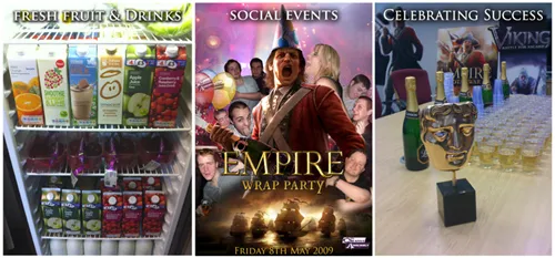 Мы также регулярно устраиваем различные мероприятия вроде пэйнтбола, картинга, гольфа, релизных вечеринок, игровых турниров и выездов на барбекю. В студии также уделяют внимание Рождеству, мы устраиваем вечеринки для персонала и их семей с отдельной детской программой с Санта-Клаусом.