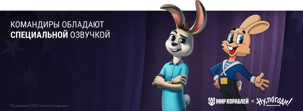 В рамках обновления команда «Мира кораблей» приглашает своих игроков окунуться в мир любимой анимации благодаря сотрудничеству с киностудией «Союзмультфильм». Герои культового мультфильма «Ну, погоди!» предстанут в совершенно новом свете. Игроки могут выполнить боевую задачу «Заяц? Заяц, заяц...» и получить двух тематических командиров: Зайца из классического мультфильма и Зайца ’21 из новой версии «Ну, погоди! Каникулы». Оба персонажа обладают специальной озвучкой, анимацией в Порту, а также они начисляются без привязки к нации.