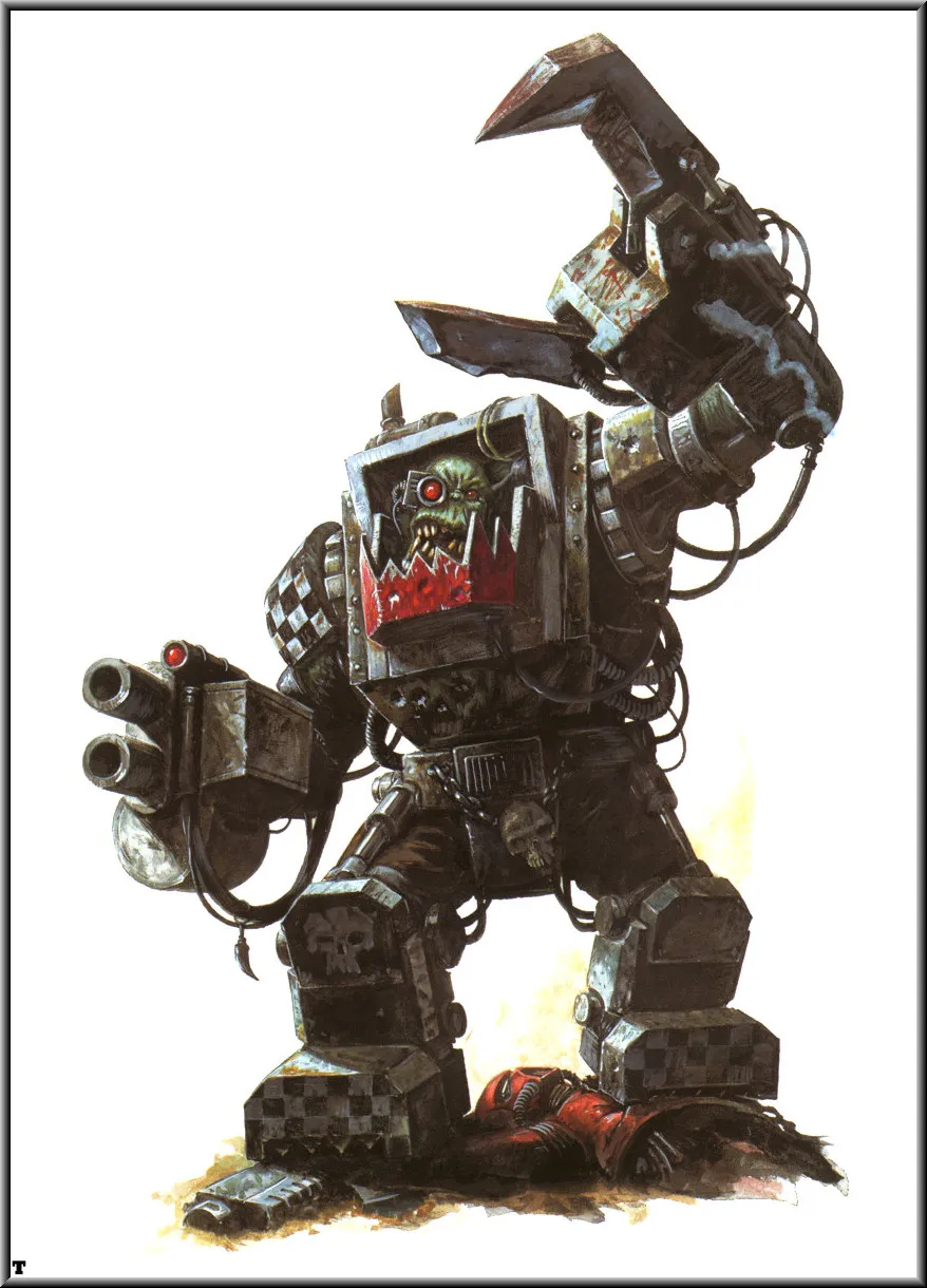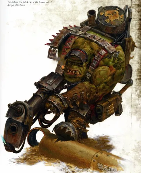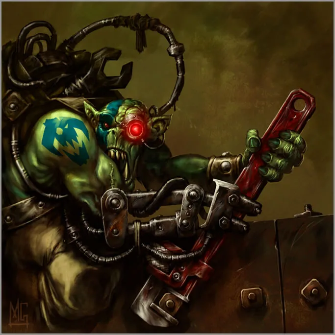 Мек. Он же меканик, он же меканьяк, он же мекбой. Непризнанный гений-самоучка, способный по пьяни собрать из хлама варп-двигатель, генератор силового поля и телепортер, чтобы через пару дней напрочь забыть все схемы. Главное ведь вдохновение ! Главные требования к изобретениям - крутизна(обязательно!) ,величина(если хватит хлама) и стрелючесть(погромче !). Несуразные с виду, собраные из мусора оружие и техника зеленокожих однако способны сокрушать любые вражеские армии, превращая могучие боевые машины и неприступные крепости врагов в горы мусора, из которого потом...ну вы поняли.