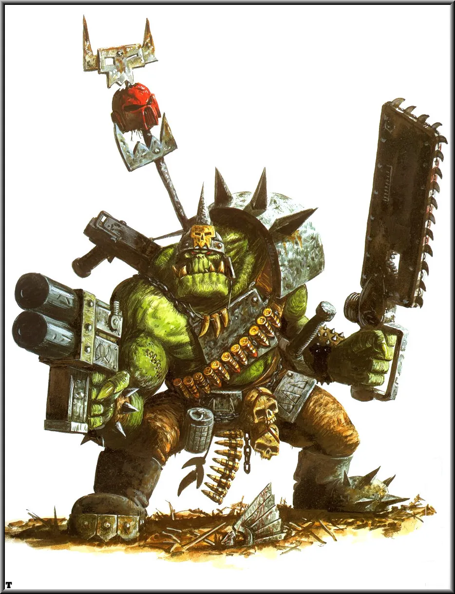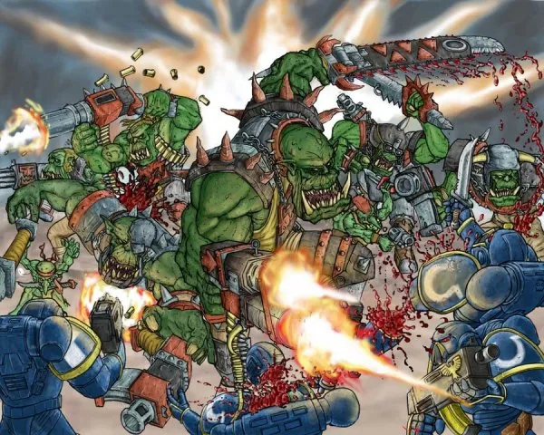 Есть у этих существ весьма оригинальные родственники в мире мрачного, жестокого и сумасшедшего будущего Warhammer 40к, где как известно, есть место только войне. На протяжении тысячелетий они являются головной(и не только головной) болью у всех народов и фракций этой вселенной. В этой статье я постараюсь рассказать об этом раздолбайстве галактического масштаба, или как говорят в таких случаях сами орки: WAAAAAAAGHH !!!