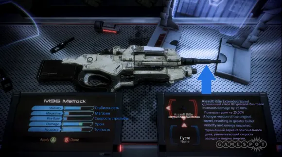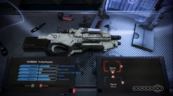 Судя по увиденному нами в видео-прохождении, все улучшения вооружения будут крутиться вокруг пяти аспектов – стабильности, объема магазина, скорости стрельбы, урона и точности попадания. Так как Шепард в видео подходил к “рабочему” месту с одной только штурмовой винтовкой, а в распоряжение получил набор из 4 вариантов оружия, можно сделать вывод, что модернизации подлежит все открытое оружие на момент прохождения.