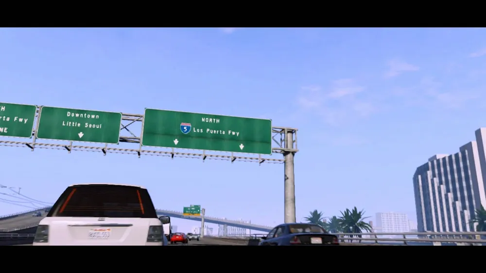 Хайвэй, направления в Little Seoul в центре города и на север по Los Puerta Fwy. Котаку уверяют, что interstate 5 ведет чуть ли не в Мексику. Так-то далеко нас едва ли закинут, но сам факт. Глядишь, и не одним Лос-Сантосом ограничатся. Хотя мне отчего-то кажется, что нас ждет схема "купи DLC - получи новый город".