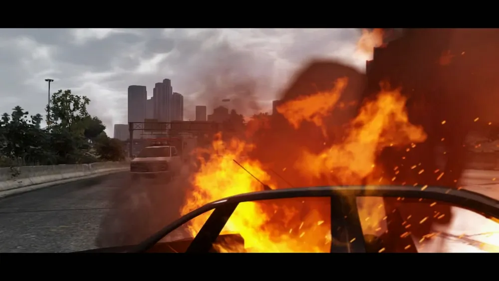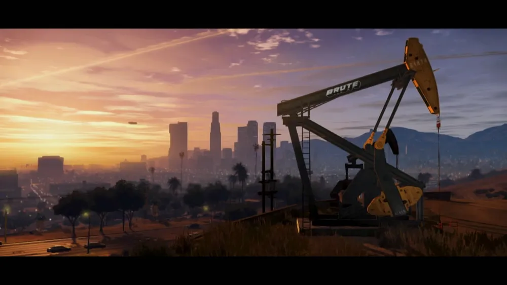 Вид Лос-Сантоса. Справа сверху вертолет. Ими в GTA уже никого не удивить, но всё же.