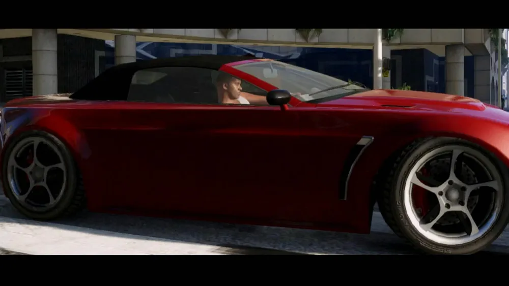 У машины откидной верх, но так как это всё же кат-сцена, и хоть дальше и будет фрагмент с этой же машиной с закрытым верхом, но лично у меня большие сомнения, что такая фича будет реализована непосредственно в игре. Пушо ну какой смысл.