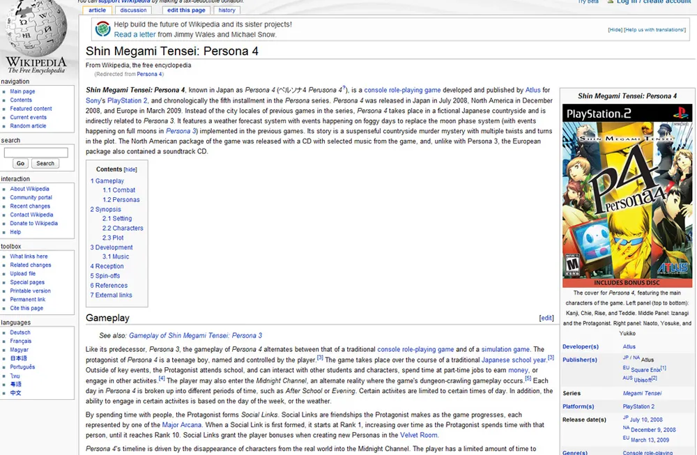 Представляю вашему вниманию ссылки на различные интернет-ресурсы по игре Shin Megami Tensei: Persona 4, пройдясь по этим ссылкам, вы найдёте всю известную, на данный момент, информацию по игре. Эта информация, я надеюсь, поможет вам получить ещё больше удовольствия от этой замечательной игры.