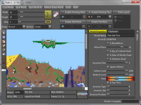 TEdit это open source редактор карт для Террарии. Он позволяет редактировать карты почти как в пэинте! Вы можете редактировать любые параметры мира, такие как время, убитые боссы, и даже содержимое сундуков.