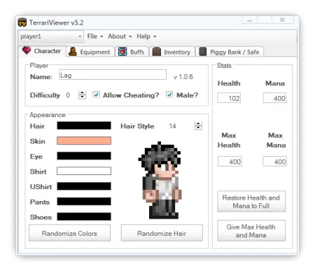 Эта программа позволит вам создавать полный скришот вашего мира Terraria. Возможно показывать такие элементы как сундук, Теневые Шары, Хрустальное сердце, а так же руды Золото, Алмаз, и другое.