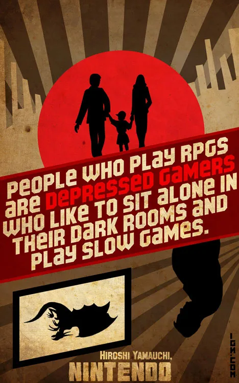 "Люди, играющие в RPG - геймеры, страдающие депрессией, которым нравится сидеть одним в своих тёмных комнатах и играть в медленные игры" - Hiroshi Yamauchi, Nindendo