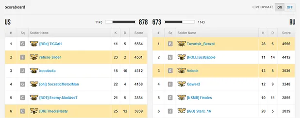 Совсем скоро в Battlelog откроется новая функция "Live Scoreboard" - "табло" статистики в реальном времени.