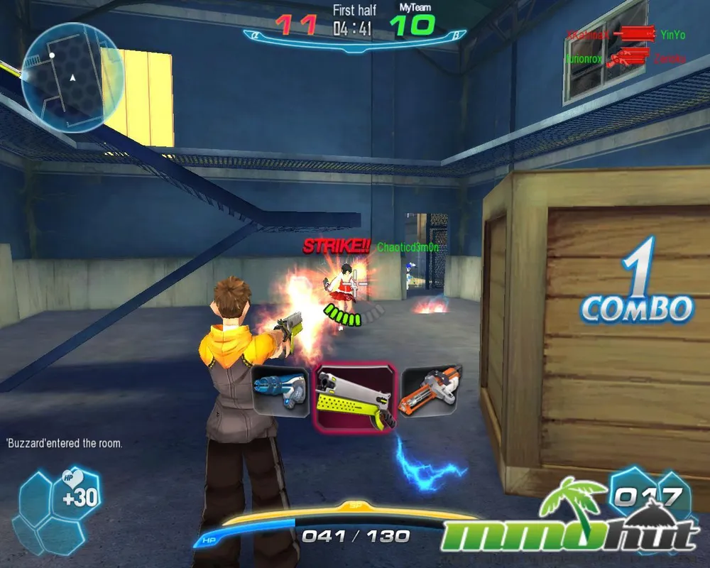 Все оружие делится на классы: Ближний бой: Plasma Sword, Counter Sword, Storm Bat Оружие средней дальности: Sub Machine Gun, Revolver, Chain Gun, Pistol Снайперское Оружие: Gauss Rifle, Semi Rifle,Launcher, Cannonade, Railgun Оружие поддержки: Sentry, Mind Energy, and Mind Shock Каждое оружие имеет свои плюсы и минусы, начиная от скорости стрельбы и точности, до урона и дальности стрельбы