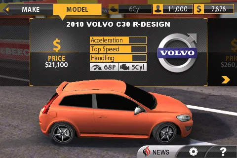 Карьера. Вначале игры вам предложат купить машину в пределах стартовых 25.000$. Для Гольфа этих денег было недостаточно, поэтому я выбрал Volvo за "красивую морду" :)