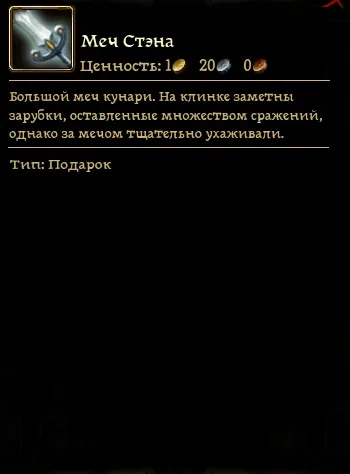 - Разговорив мальца, мы узнаём про их родовой меч, которым он хотел рубать нежить. Убеждаем его, что нам этот меч нужнее, и получаем от него ключ.