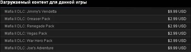 Свершилось, товарищи! Не прошло и полугода, как до 2K дошло, что есть в России люди, готовые покупать DLC напрямую через Steam! Отныне любой россиянин, желающий купить, к примеру, Joe's Adventure или Jimmy's Vendetta, может расстаться со своими деньгами, сидя за компьютером, а не стоя в очереди в магазине. Хотя до этого и можно было купить паки машин, но вот сюжетные дополнения стали доступны только сейчас. В любом случае, убивает тот факт, что 2K начали продавать дополнения через сервис цифровой дистрибьюции после официального релиза на дисках в России. Логичный вопрос: нафига? Любопытный факт: The Betrayal of Jimmy до сих пор остается невозможным купить через Steam ни нам, ни американцам. Почему - загадка. Таким образом, его можно получить только через коробочное издание игры.