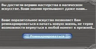Сделать это он может в Башне магов любого города. При этом все Ваши текущие навыки обнуляются, и Вы начинаете свой путь снова. В виде бонуса от Администрации каждая новая инкарнация начинается с 5 го уровня.