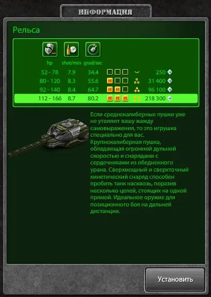 Ну, а пока мы можем зайти в любой бой, и насладиться отличной пробиваемостью, скоростью и мощностью многими любимой пушки «Рельса», в то время как сильные мира сего лишь мечтают о таком оружии.