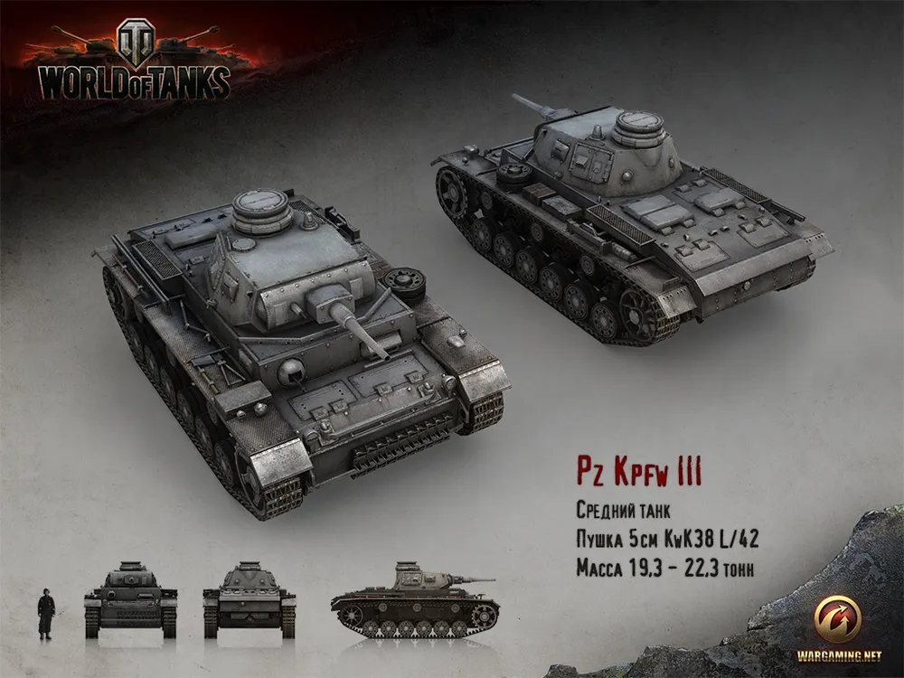 PzKpfw (Panzerkampfwagen) III — немецкий средний танк времён Второй мировой войны, серийно выпускавшийся с 1938 по 1943 год. Превосходная боевая машина среднего класса, которую по достоинству оценили игроки «Мира танков».