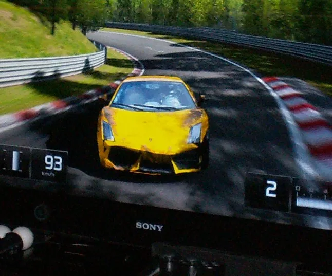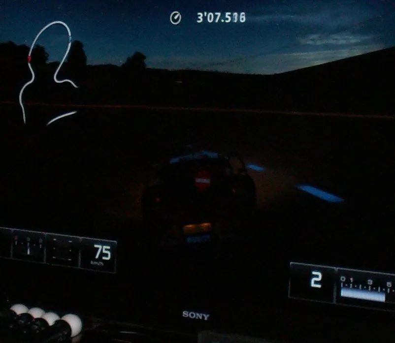 Посмотрев на реализацию 3D, продолжили изучать демо Gran Turismo 5 в привычном виде. К этому моменту "сверху" поступило очередное указание: съёмку разрешить. Так что предлагаю оценить внешний вид игры (насколько вообще можно оценить видеоигру по статичным фотографиям, сделанным с экрана телевизора):