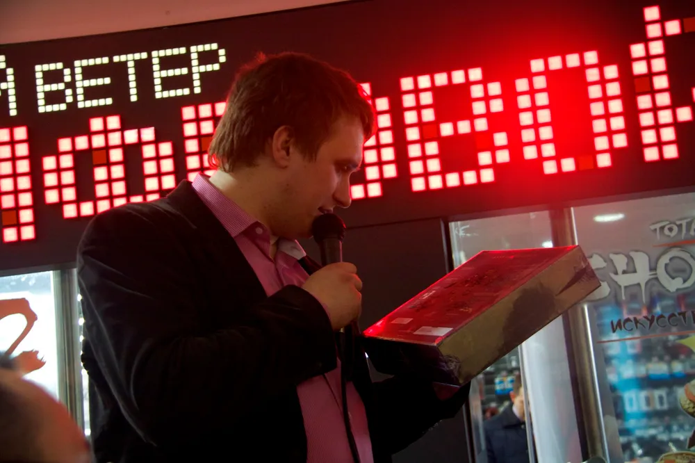 Каждый из них получил по геймпаду, и побежал занимать очередь за игрой, которая по традиции далеко растянулась по магазину. Делегация GAMER.ru в составе меня, ultravix и Cannoneer наблюдали за покупателями с безопасного расстояния, а администрация в составе NoFate и Kotovsky покинула нас исследовать верхние этажи "Европейского". Прошло 10, 20, 40 минут… Очередь шла медленно, но продолжать шоу без самых "преданных фанатов", которые стояли в самом конце её, было бы неправильно. Так что мы любовались на оставшиеся призы (немаленькая кучка джевелов, коллекционка Mafia 2, пара геймпадов, россыпь флэшек, три видеокарты AMD и СУПЕРПРИЗ), и ждали. Когда стал виден конец очереди, была предпринята вылазка на территорию магазина. Вот что мы там обнаружили: