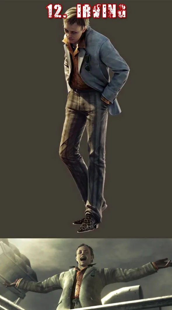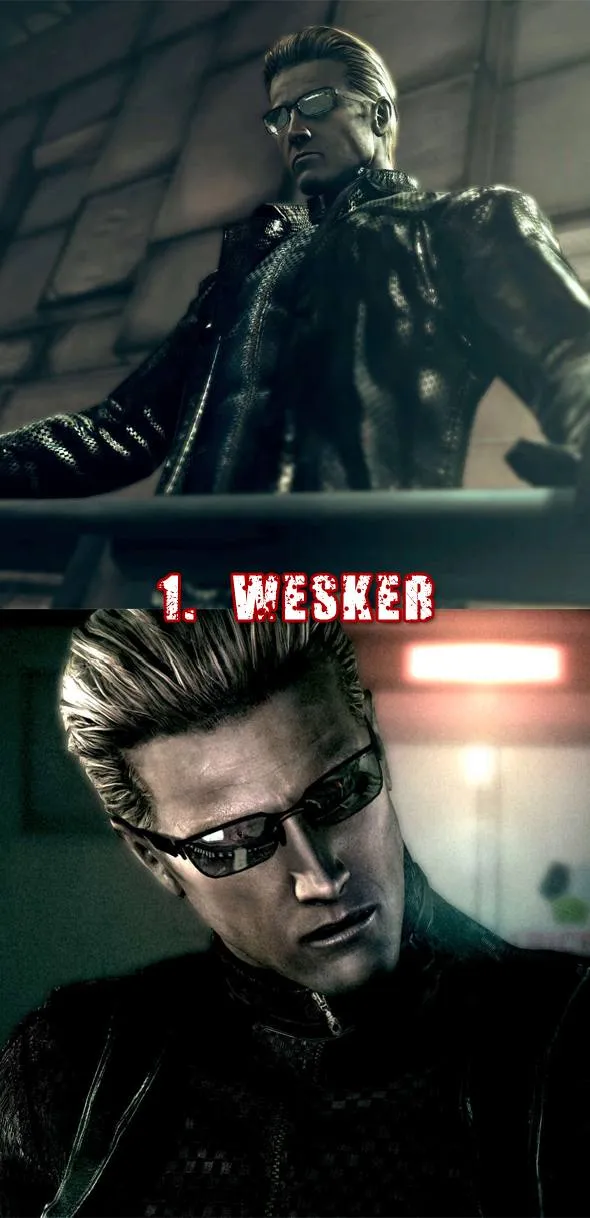 Главный злодей, он же самый сильный босс в игре Альберт Вескер. В облике человека практически неуязвим: уклоняется от пуль, отражает удары (мне напомнил агента Смита из Матрицы), очень позитивный - постоянно улыбается и убегает от нашего героя на протяжении всей игры.