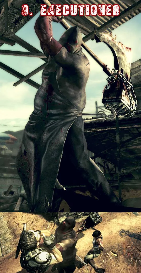 Один из самых ожесточенных монстров сталкивающихся с Крисом и Шевой. Оружие палача - огромный тяжелый топор, он делает владельца медлительным, но может нанести значительный урон.