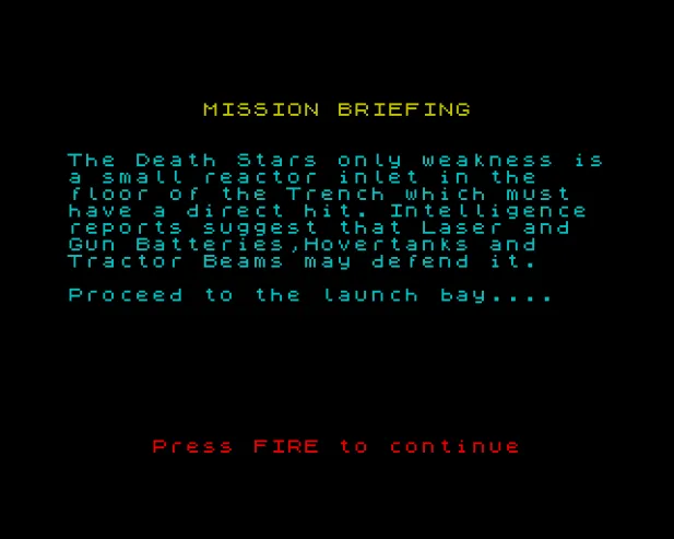 Игровой процесс разделен на три части: взлет, затем полет до звезды смерти, где приходиться прорываться через вражеские истребители, и третий этап - летим по самой звезде смерти, вернее, прямо по ее поверхности. Первый этап игры – взлет , самый быстрый. Достаточно направлять ровно в центр звездолет при помощи “влево”, “вправо”, ну и не забудьте завести звездолет клавишей “стрельбы”. Делайте все плавно, много клавиш не жмите – и все получится! Ровно в центр!