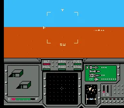 Брифинг миссий – представляет собой хорошо сделанную заставку дляNES - анимированные рисунки с текстом снизу. А далее мы готовимся к вылету, выбираем истребитель и можем вооружить его по своему усмотрению, к счастью, больших познаний в ракетах не требуется и можно доверить эту опцию – компьютеру. Не долго думая, можно выбрать автоматическую настройку. На выбор нам предлагается три стальных птицы –F14 Tomcat,F18 Hornet иHarrier. Кокпиты самолетов выглядят разными.