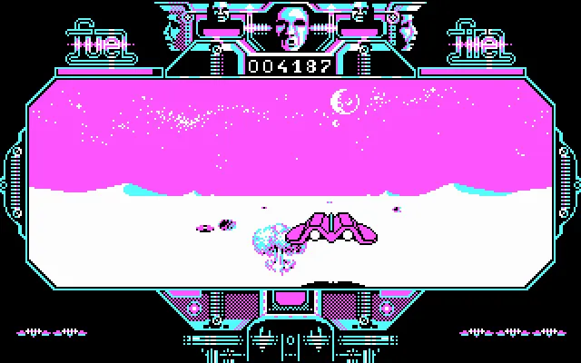 Графически игра была прекрасна. Да, я знаю, что тогда уже вышел тот же Metal Mutant, графика в котором была в разы лучше, но до заснеженной России медведи в ушанках доставляли продукты высоких технологий несколько неспешно. По этому летающий по кислотным псевдо-3D пустыням отважный кораблик и отстреливающий недругов, метеориты и большие летающие головы был для меня прекрасен.