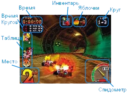 Crash Bandicoot — Что тут сказать в игре он ни чем таким не выделяется. И машина у него не такая уж крутая.