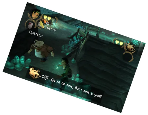 Не только со Свином-дядюшкой придётся пообщаться в игре. Тут будут и спецагент с суперменскими замашками и электронный друг с явным избытком кофе экспрессо в крови и характерным акцентом, а также серьёзные носороги и несерьёзный громадный пёс, торговцы в магазине и просто местные жители. Управляемых диалогов почти нет, всё плавно вливается в единую историю о добре и тех, кто себя за добро выдаёт.