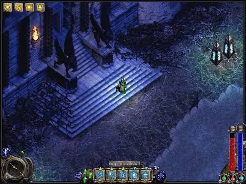 К слову сказать, графика в игре по тем временам была более чем симпатичная. Хоть это и была изометрия и никакого "тридэ", но все локации были нарисованы добротно и с любовью, в точности передавая атмосферу того места, где вы находились. А потому перепутать крепость Огненных Рыцарей Дан Мир и Башню Магов нельзя было аж никак. Модельки персонажей тоже были прорисованы очень тщательно. По внешнему виду вашего персонажа вы могли в точности видеть, что на нём надето. При чём доспех был не цельный, а сборной, состоящих из отдельных частей, как полагается. Так что бегать да ещё под атмосферную музычку было по миру Nox весьма комфортно.