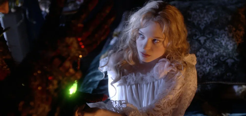 Но не все потеряно, ведь это, повторяюсь, Кристоф Ганс – человек, снимающий не идеальное, но всегда очень качественное кино. В данном случае мы вновь можем наблюдать обилие деталей в декорациях, как будто нас телепортировали в прошлое, а не показывают современный дешевый спектакль. Резное дерево, изысканные чаши, паутинки по углам, деталей так много, что разглядывать обстановку становится едва ли ни интереснее, чем следить за отношениями девушки и зверя. У этих двоих и так все понятно, а финал предсказуем.