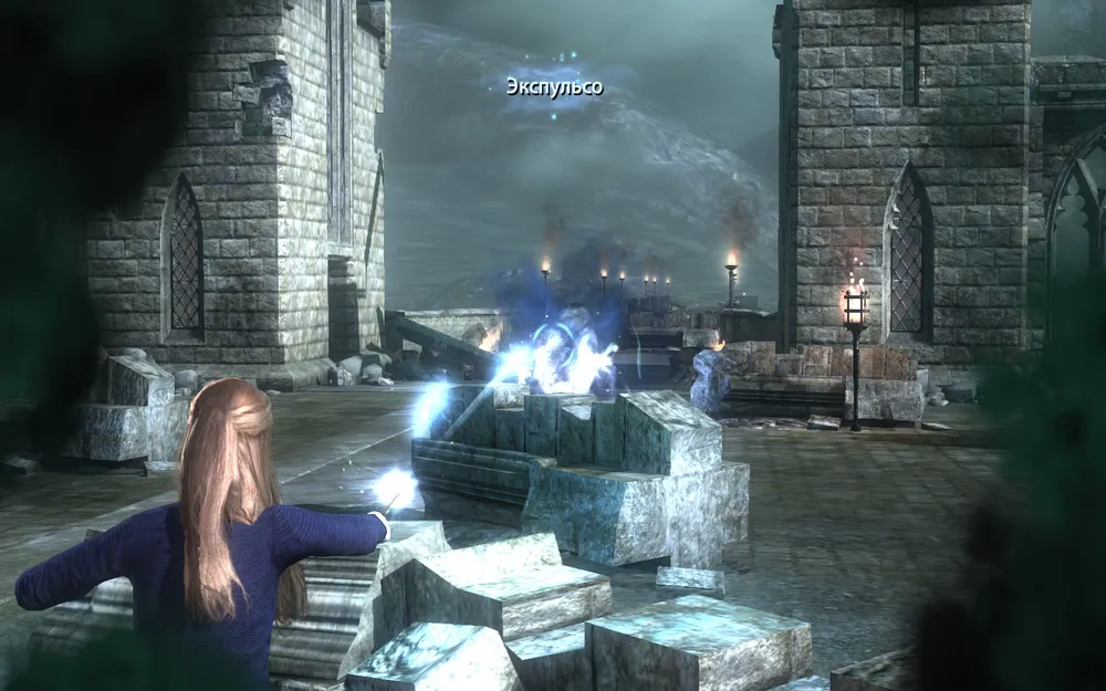 Представьте, вы играете заГермиону, а Гарри Поттер пошел по делам. Тем не менее, наши враги все так же неумолимо через две-три фразочки отпускают нечто подобное: «Ты умрешь Поттер! Война проиграна!». А наш персонаж женского пола, колдуя заклинания со скоростью самого быстрого репера Хогвардса, так и норовит выкрикнуть голосом Гарри какой-нибудь «Остолбеней!». Хотя в целом звук нормальный, а озвучка персонажей и вовсе взята напрямую из фильма, что в нашем случае - профессиональный русский дубляж. Что до музыки, то она тоже была позаимствована у кинокартины, а там она очень хороша и насыщает игру хоть каплей атмосферы и эпичности оригинала.