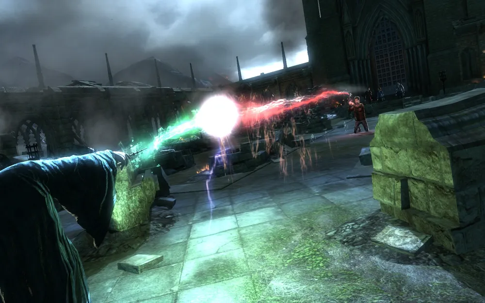 • Экспеллиармус — заклинание, которое должно обезоруживать. Здесь же оно просто слегка оглушает противника и разбивает наложенное на него протего.