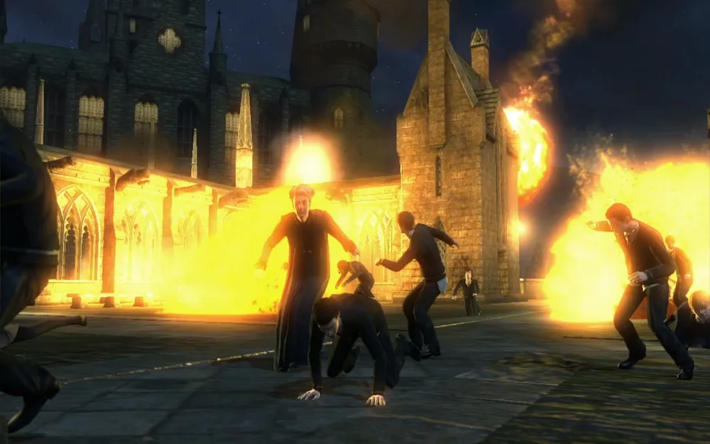 Битва в самом разгаре. Школьники овнят толпы пожирателей смерти.