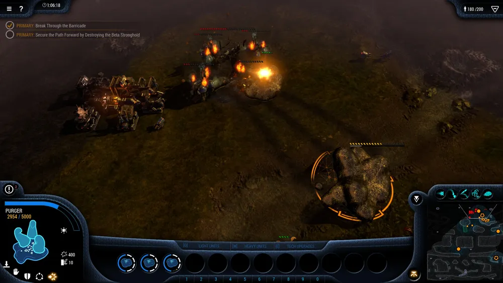 Другое важное отличие Слизи от людей и Беты - у неё нет авиации, но вместо этого многие войска могут карабкаться на возвышенности, что играет очень важную роль: бойцов на холме невозможно обнаружить снизу, что позволяет им безнаказанно обстреливать не имеющего разведчиков врага. Наконец, сам набор войск у Слизи очень разнообразен - тут и аморфные массы, пожирающие врагов и распадающиеся на солдат, и артиллерия, превращающая жертв в пригодные для поглощения "материнской слизью" ресурсы, и безоружные колоссы, перенаправляющие на себя вражеский огонь и блокирующие линию зрения, и невидимые ходячие мины, оставляющие после себя... правильно, опять-таки аморфную слизь. Разработчики смогли, пусть и с некоторыми ограничениями, передать особенности стороны конфликта, представляющей из себя массу нанороботов, для которых всё вокруг - сырьё для создания новых нанороботов.