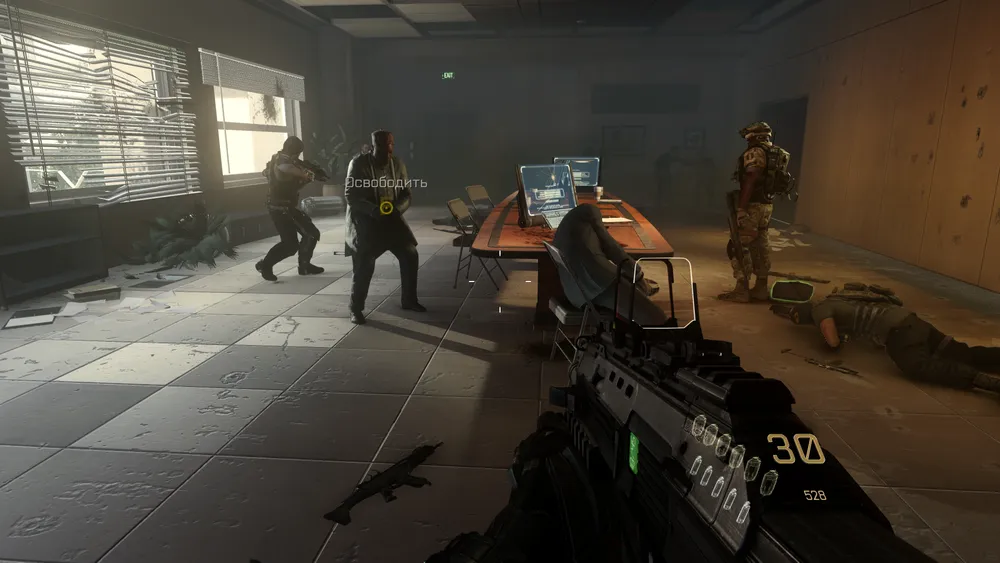 Если бы это не так лагало, то я бы наслаждался графоном намного дольше. После сверхубогого «Ghosts», серия показывает, что, несмотря на дряхлый движок, графика может быть достаточно современной, чтобы порадовать графинолюбителей всех мастей. Скажу страшную вещь: местами это даже лучше «Battlefield 4» ровно в полтора раза, а в плане света и светоотражения – во все два. Разрушаемость бы еще такую же, но ее, увы, опять не завезли.