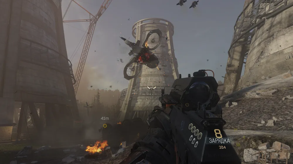 В этом плане работа Sledgehammer выглядит как-то неуловимо иначе. Тут пафос подается как необходимая часть происходящего, он идет настолько неотрывно от сюжета, что без него будто бы совсем нельзя обойтись. Он превращается в обязательную норму, он подслащает слишком крепкий чай, и тот становится не только насыщенным, но и вкусным. Поэтому динамика игры теперь совершенно иная. Смена декораций происходит чаще, смена ситуаций – еще чаще. Да кому нужен сюжет, коль игроку дают такой калейдоскоп из лиц, экшена и новых впечатлений от военного технического прогресса? Ну, наверное, только тем, кто играет в игры только из-за этого самого сюжета. Однако даже такие игроки могут о нем напрочь забыть, едва войдя сюда. Я могу не вспомнить, как называется глава, могу не вспомнить, о чем там вообще говорили персонажи, но вот то, что в ней происходило из моей памяти уже не вытащить. «Тучи» из дронов, шагающие танки, взрыв атомной электростанции, неожиданный «тренировочный симулятор», да даже самую настоящую стэлс-миссию с «кошкой», где никто не говорит, как, кого и когда убивать.