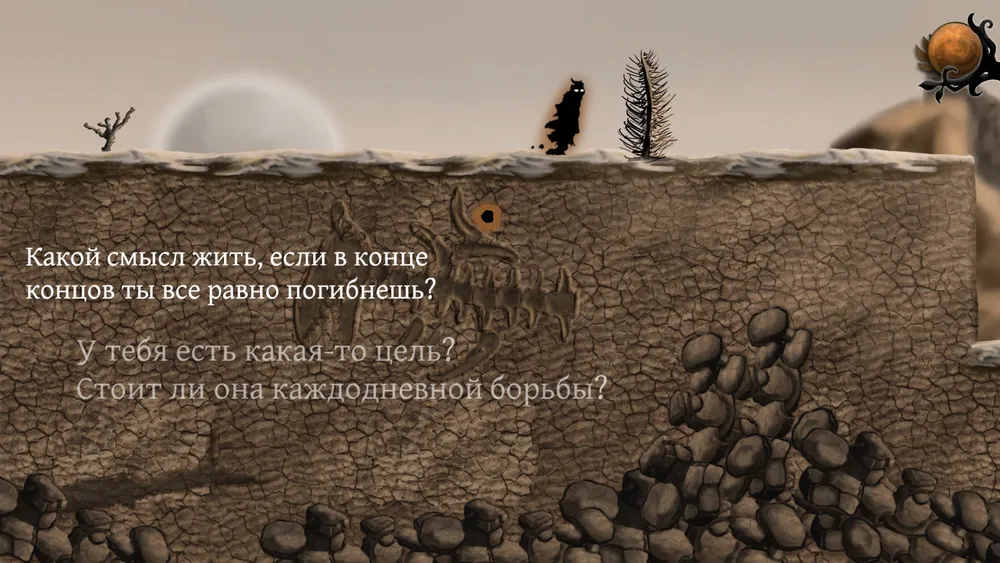 Но важно, конечно, не это, а то, что идет фоном. Тот самый упомянутый мной голос не только загонит вас в самые дремучие места вашего отчаяния и грусти, но еще и расскажет эту самую историю, о которой я также уже успел рассказать. История – просто шикарнейшая. Она и еще простой геймплей надежно удерживали меня внутри игры и отбивали всяческое желание выходить. Сел за нее и вышел только через два часа, переполненный эмоциями и очень яркими впечатлениями.
