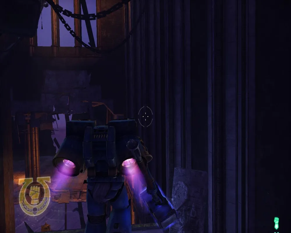 Для любителей рукопашного боя тоже припасён сюрприз – несколько раз капитану Титу предоставится случай надеть реактивный ранец и почувствовать себя ангелом смерти, несущим врагам Императора возмездие с небес. Выдаётся эта радость строго дозированно и только по сюжету, но и этого вполне хватает, чтобы распробовать новые возможности. С реактивным ранцем капитан Ультрадесантников прыгает по уровню, как блоха, и буквально разносит в кровавую пыль врагов, падая им прямо на головы.