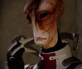 Ну и наконец естьрыба-ящерица дрелл – Тэйн. Тэйн – суровый убийца по найму, а в душе тонкий поэт. И надо сказать, что персонаж довольно таки интересный как по расе, так и по персоналиям. И диалоги с ним довольно интересны. И все бы хорошо… но совершенно невозможно с прямым лицом смотреть на то, как сделаны диалоги с ним. Надо сказать, что, согласно популярному нынче направлению, Bioware старается сделать игры более кинематографическими. То бишь сценки теперь стараются сделать в виде фильмов, с монтажом, планами и прочей операторской работой. И господи, как это смешно. Дело в том, что Тэйн обладает фотографической памятью и иногда в диалогах как бы дословно вспоминает моменты из своего прошлого. И создатели не нашли ничего лучше, чем сделать на эти моменты резкий монтаж из разных крупных планов лица Тэйна. Невозможно описать словами, насколько это смешно. Нигде я наверное не видел настолько смешного монтажа и переключения планов. Эти сцены подарили мне десятки минут сильного здорового смеха. Проблема в том, что задумывались они как совершенно серьезный прием для подчеркивание драмы в диалогах. Судите сами добились ли они необходимого эффекта. Это надо видеть.