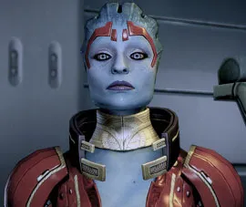 Далее есть Самара: Азари-Джастикар, строгий но справедливый воин-матриарх Азари(Это только я или она подозрительно живо напоминает Бастилу из первого KOTOR’а?)Собственно, еще один вариант “не рыба не мясо”. Т.е. технически она вроде как персонаж интересный, вроде бы и ближе знакомит с традициями и философией Азари. Но черт, совершенно ни видно никакой искры в образе, никаких невероятных диалогов и драматических развитий персонажа. Или я слишком многого хочу?(Заранее отвечу на вопрос – Моринт я не брал, но она судя по всему очередной стандартный “плохиш”. Плюс она представляет собой какую-то не очень хорошую аллюзию на Готический Вампирский Роман. Не знаю, возможно за этим персонажем и есть что-то интересное, но на первый взгляд в квесте я этого не заметил)