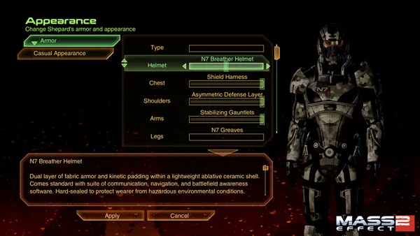 Кстати говоря претерпела изменения и сильно упростилась и система оружия. Если раньше надо было минимально разобраться в производителях и закупить необходимую “цифру”, то теперь все необходимые стволы будут постепенно разрабатываться. Что же до брони, то ее теперь нет. Она личная у каждого сопартейца, а у Шепарда можно только добавлять несколько модулей для тех или иных целей. Ну и конечно, можно “кастомизировать” внешность своей брони, например покрасить ее или изменить рисунок(Я не понимаю, кто мне объяснит, как поставить на Шеппарда Спойлер и наклеить декали с изображеним языков пламени? И где рэп, черт возьми, who da fool rolling widaut da hip-hop, man?)
