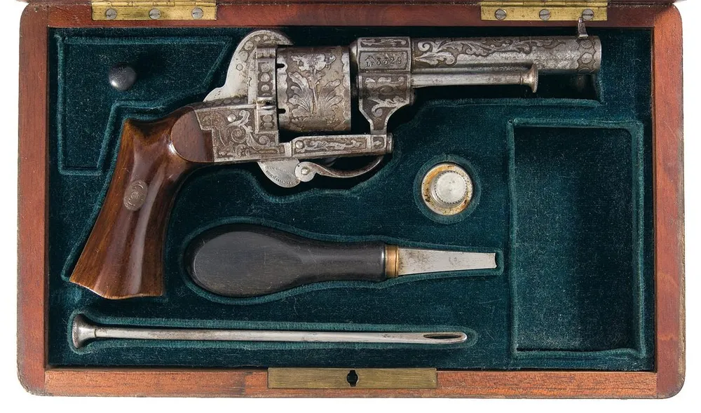Пистолет конструкции Лефоше. 1860 год выпуска. И да, он все ещё стреляет. Средняя стоимость — около 200 000 руб.