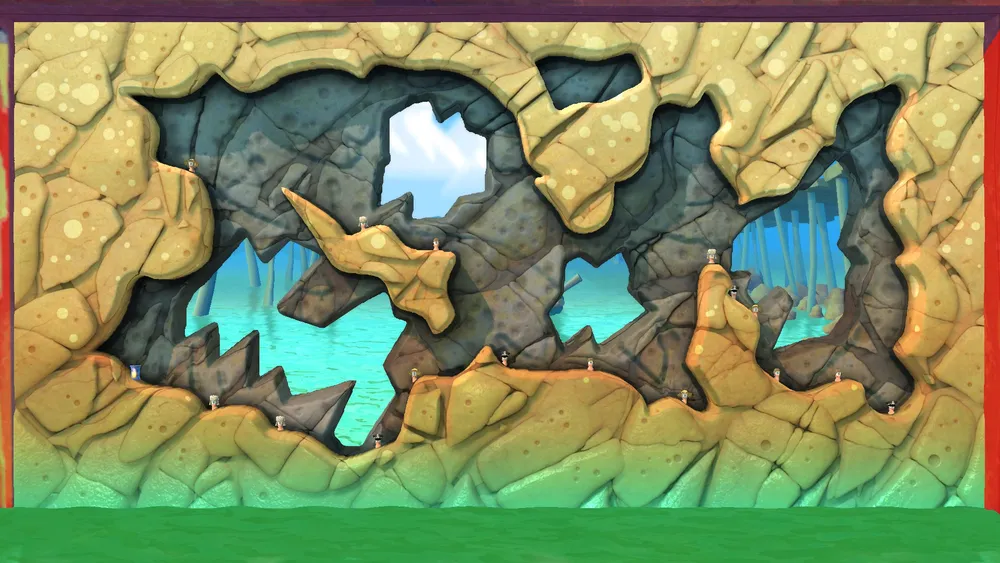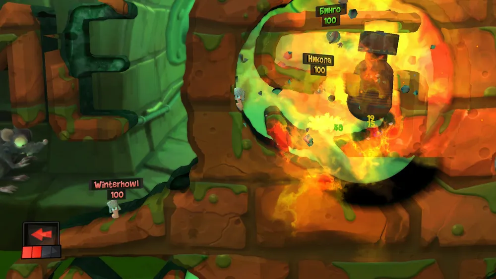 Еще одним нововведением стали большие интерактивные объекты, всяческие баллоны с водой, грибы, выпускающие ядовитые споры, и старые невзорвавшиеся снаряды, которые при должном старании таки могут долбануть. Это все идет в довесок к знакомым минам и бочкам с напалмом. Еще появились турели, которые, кстати, могут быть и оружием в лапах червей и нейтральным объектом, стреляющим по всему, что попадает в сектор обзора. Но одними нововведениями сыт не будешь, ведь так? Давайте посмотрим на игровой процесс. И тут, к сожалению, смотреть не то чтобы не на что, но то, что есть, не слишком радует глаз. Скажу сразу - поиграть по сети у вас вряд ли получится. Автор этих строк пробовал в разные дни и разное время - игроков нет. Положение призвана спасти старая добрая дуэль в режиме hot-seat. И тут все как бы замечательно, если у вас есть два-три друга, готовых погонять кольчатых по уровням. Но если вы forever alone, то ИИ не вызовет в вашем уме ничего, кроме раздражения. На низком уровне он безбожно долго думает и тупит, на высоком начинает играть весьма нечестно и практически не ошибается. Может быть, стоит заглянуть в режим одиночной игры и пройти кампанию? Можно, только первые же уровни её нагоняют жутчайшую тоску. Дальше немного бодрее идет дело, но до этого надо еще добраться...