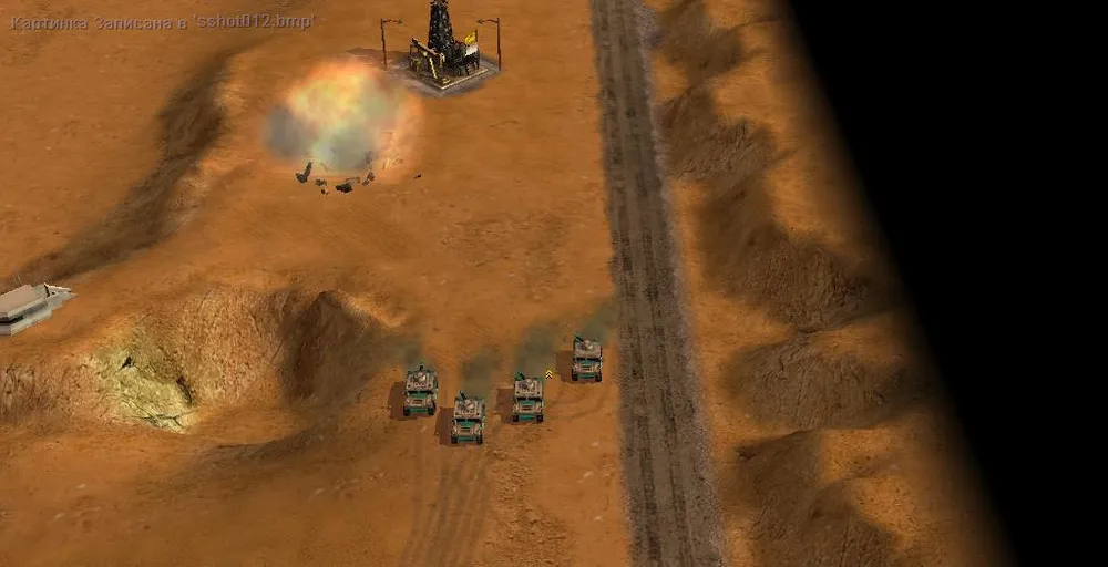 • наконец то начинается зачистка от норной экспансии ГЛА, сквозная атака справа, но дойдя до правой нефтевышки, НeТpeЗВ почему то разворачивается обратно. Трудно сказать что случилось, то ли мышка заглючила, то ли страх перед могущественным Дилмаком, но момент был упущен. Второй (ИМХО конечно же) очень важный и возможно переломный момент