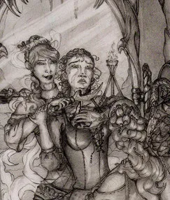 Хотелось бы особо отметить работы этого автора. Ее рисунок к "Осколку бессмертия" появился задолго до конкурса. Она - самая первая, кто не побоялся попытаться иллюстрировать "Прах Судьбы". Без обещаний всяческих призов, а просто по вдохновению.