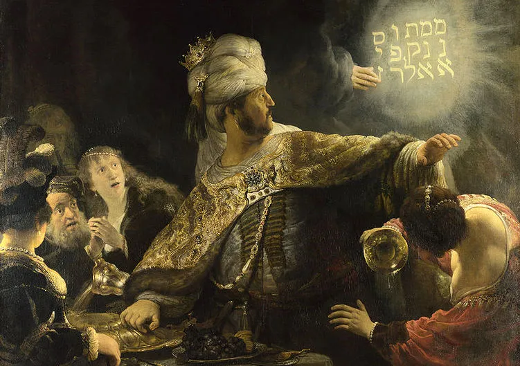 Вот и значение слов: мене — исчислил Бог царство твое и положил конец ему; Текел — ты взвешен на весах и найден очень