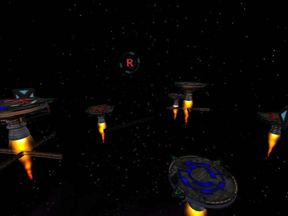 В Ricochet нет привычных прыжков и приседаний. Для того, чтобы перепрыгивать с платформы на платформу, на каждой платформе находятся стрелки, указывающие либо на платформу, либо на другую стрелку, которая поднимает игрока на другой "этаж". На стрелку, понятное дело, надо наступить чтобы перепрыгнуть на другую платформу.