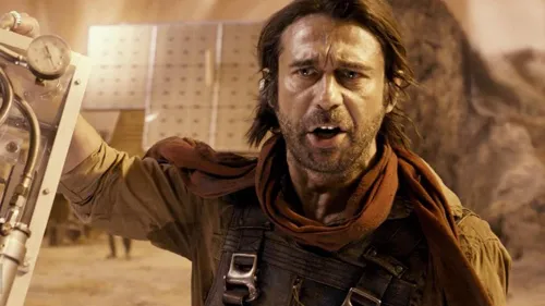 В третьем фильме про Риддика вместо тьмы и скрывающими под её пологом ужасами, роль стихии играет дождь, самый обыкновенный дождь из H2O в пустыне, возможно, после нескольких лет засухи, и если бы это был кислотный дождь, то я больше бы поверил в безысходность ситуации. И грязь, о да, грязь, оказывается, может скрывать не только бактерии и инфузории, и всяческих мокриц, а ещё очень страшных злобных монстров. Которые, правда, вырубаются с одного богатырского замаха ногой, ну, ладно, вооруженной ножичком-тесачком руки.
