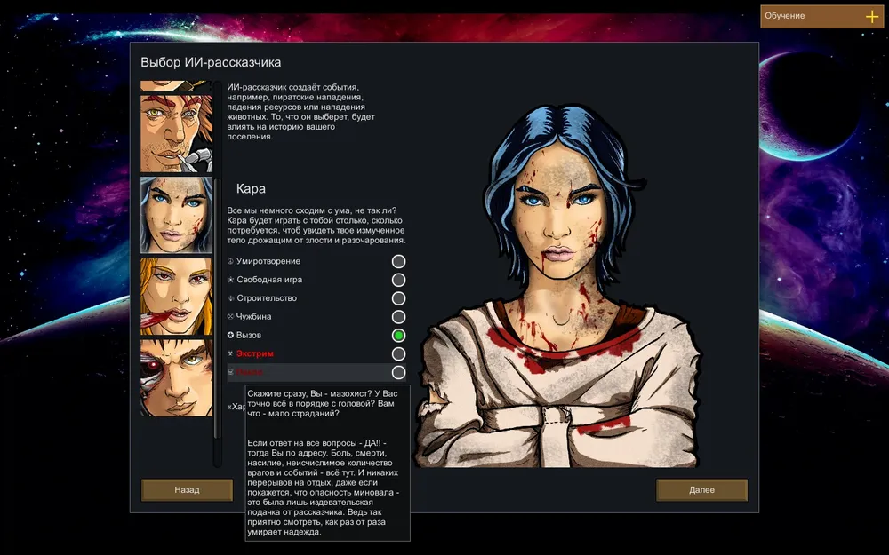 Рассказчик помогает скорректировать стиль игры. В теории, Rimworld можно превратить в подобие градостроительного симулятора